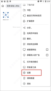 1、打开Kiwi Browser,点击右上角的三个点按钮,选择“设置”选项进入设置菜单。