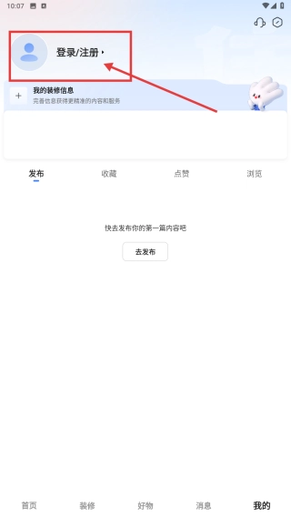 1. 开启家装应用,轻点底部“我的”选项,从而进入个人中心界面。