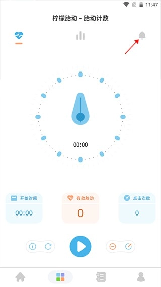 2、在胎动计数界面点击【铃铛】图标。