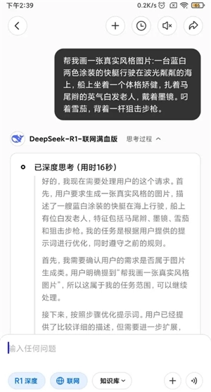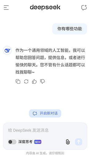 DeepSeekR1满血版手机版,这款AI人工智能软件备受青睐。它整合了数十种功能服务,像制作游戏、编写代码、制作PPT、整理表格以及提取文件资料等操作,用户都能在此完成,尽享一站式全功能服务,实用性极高。平日里若碰到难题,都能借助它来解决。喜爱的朋友,快来DeepSeekR1满血版手机版体验一番吧。