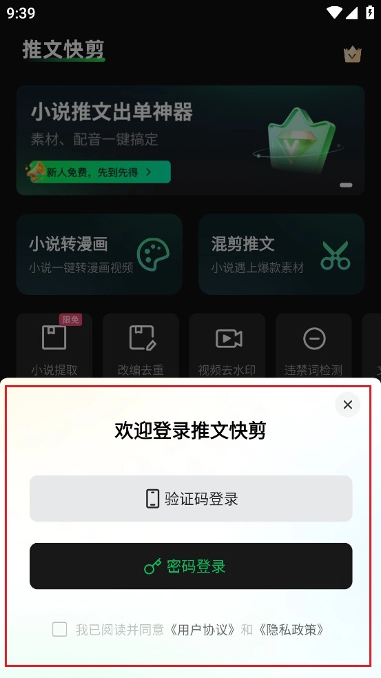1、于本站安装推文快剪,安装完成后打开,进入到首页。