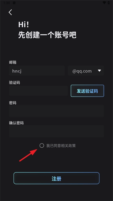 2、输入邮箱,验证码和密码,注意勾选用户协议