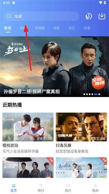 1、在本站下载软件后打开软件,于首页搜索自己想看的影视。