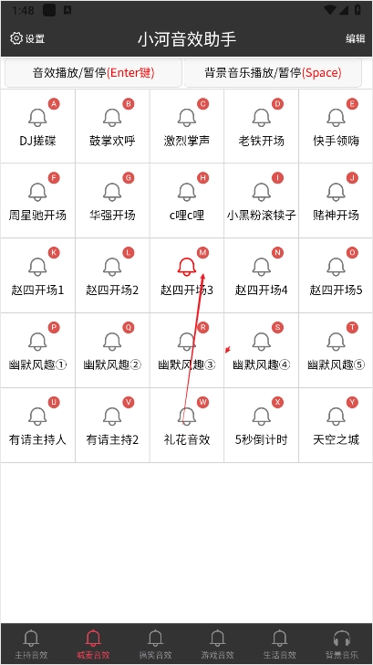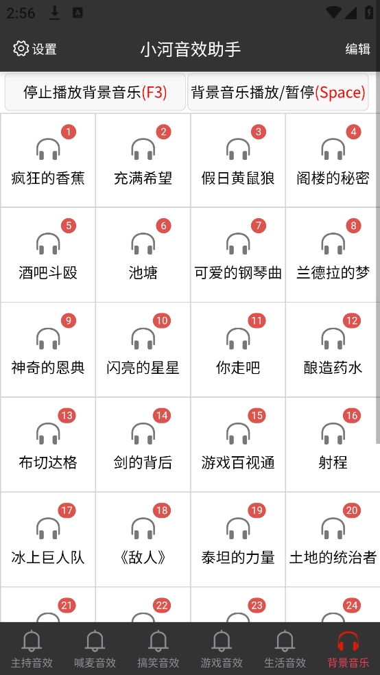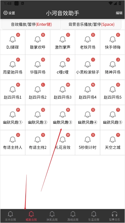 2、音效种类多样,细致划分为搞笑音效、游戏音效、生活音效、背景音乐、主持音效、喊麦音效等,方便用户按需查找。