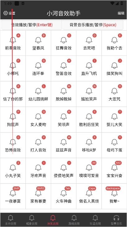 2、快捷键操作,支持手机连接键盘,使用键盘快捷键播放音效