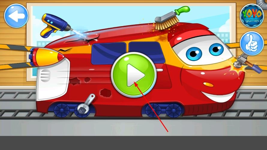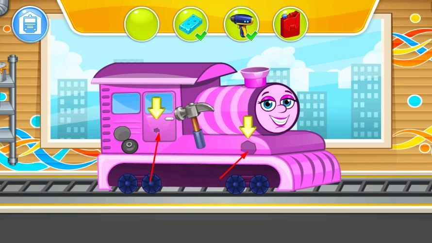 1、选择车型与初始检查:从车库中挑选待修火车,通过观察外观与提示,初步判断可能存在的故障,如冒烟的烟囱、破损的车窗,为后续修理确定方向。