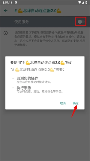 4、打开服务开关,点击"确定",返回软件。