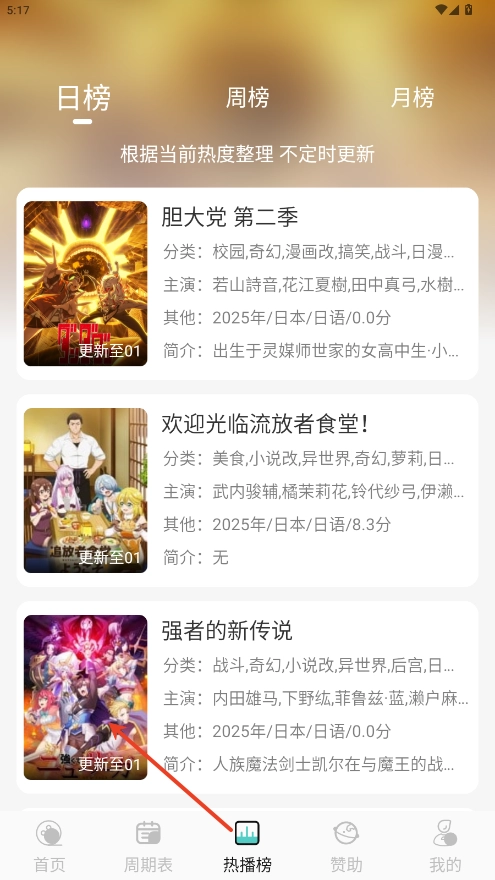 3、可以选择周期表来查看最近的更新动漫情况;