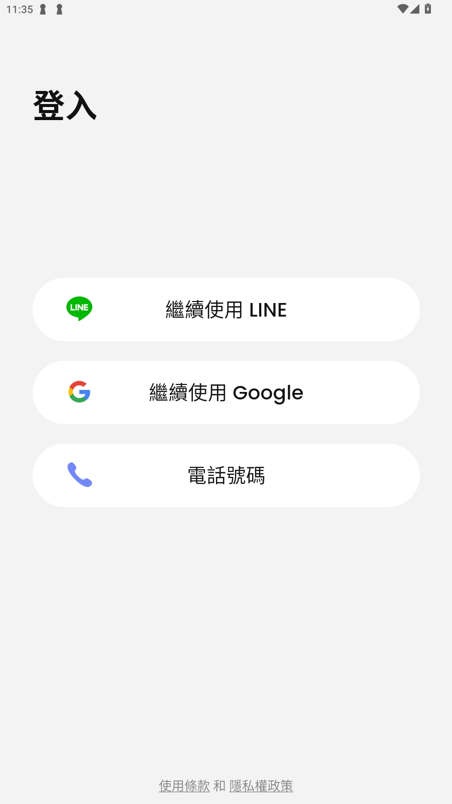 3、进入登录界面,选择登录方式,暂时支持手机号登录,line账号,谷歌账号等