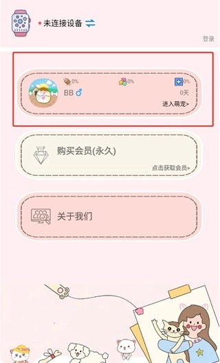 1. 进入首页后,点击页面上方的首个选项图标【进入萌宠】。