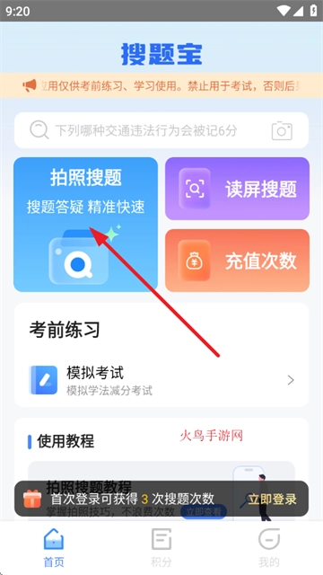 进入首页点击拍照搜题功能;