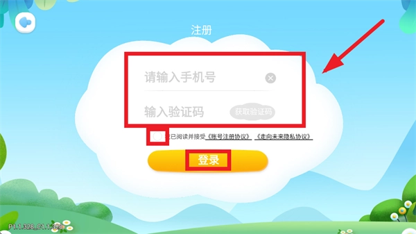 输入手机号,验证码,勾选我已阅读并接受《账号注册协议》《走向未来隐私协议》,点击登录即可注册