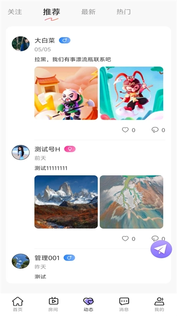 2、支持发布图文动态记录生活,关注热门动态并进行点赞、评论,通过动态发现志同道合的好友。