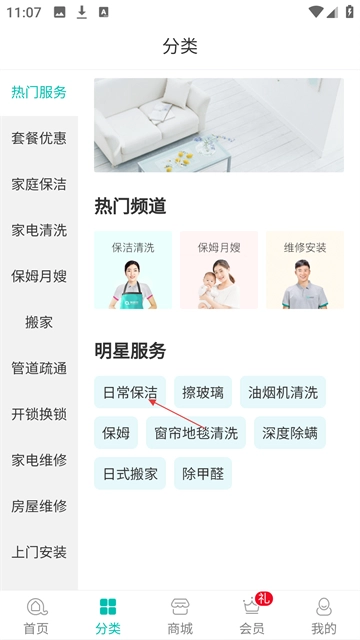 平台已上线包括保洁、家电清洗、搬家、维修、家居保养、保姆、月嫂、育儿嫂、空气治理等家政服务。