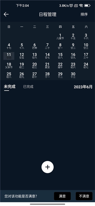 2、进入日程管理页面,选择底部的+号按钮。