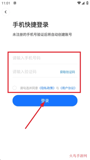 先输入手机号与验证码,接着点击登录按钮就能完成登录操作。