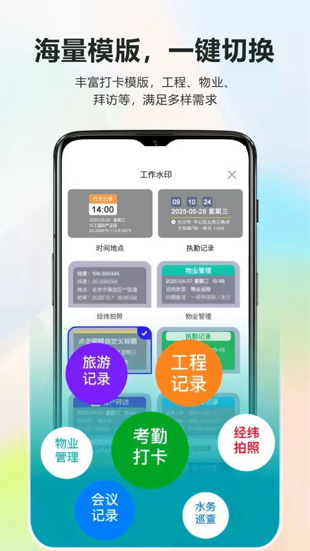 丰富打卡模版,工程、物业、拜访等,满足多样需求