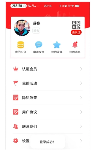 4、登录成功后,未认证工会会员显示游客信息,已认证会员显示所在工会组织名称及个人正式姓名。