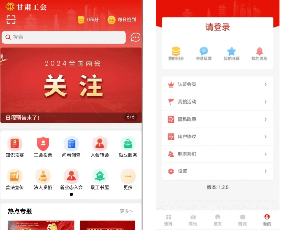 ● 功能模块涵盖网上入会、法律维权、职工书屋、就业服务、互助保障、心灵驿站、工会地图、婚恋活动、劳模工匠、新闻资讯等主要功能。