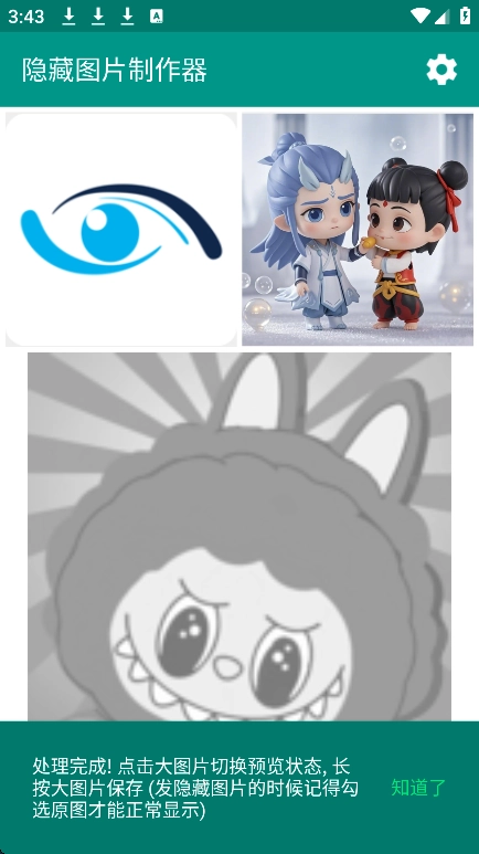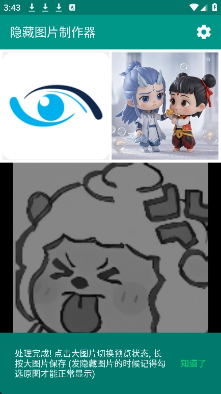 隐藏图片制作器,一款便捷实用的手机工具软件。借助它,你能轻松处理手机图片。处理完成后,点击某张图片,就能看到隐藏其中的另一张图片,趣味十足。无论是想恶搞朋友,还是给对方制造惊喜,这款软件都能派上用场。其操作界面简洁便利,感兴趣的朋友快来体验吧!