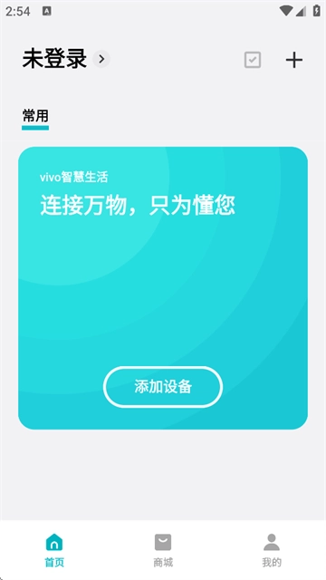 1、打开并登录手机上的智慧生活,进入首页处点击【添加设备】
