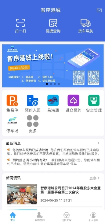 智序港城作为数字化改革服务相关应用与一体化平台,适用于宁波舟山港域的港航物流业务及其配套服务。其涵盖集易停、园区“智”约、信用“智”评、司机“智”家、易港通服务等业务。借助智序港城,集卡车司机能够高效办理港城业务。