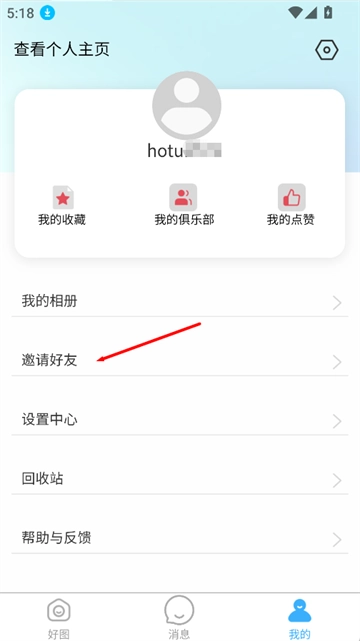 2、在个人中心中点击“邀请好友”选项,进入分享功能界面。