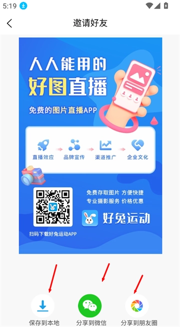 3、可选择分享到朋友圈、分享到微信,或将邀请图片保存至本地相册进行转发。