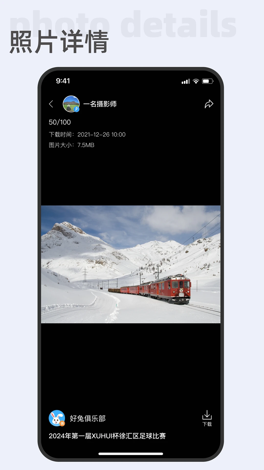 上海垂直网络科技有限公司作为一家互联网科技企业,旗下自主独立开发的“好兔运动”,是一款专注于垂直体育摄影领域的图片直播产品。它的核心目标是为俱乐部用户供应高品质的体育赛事照片服务,能够做到照片即拍即传。此外,该产品还借助线上约拍摄影服务、摄影师照片答谢以及相册功能等方式,达成业务转化。
