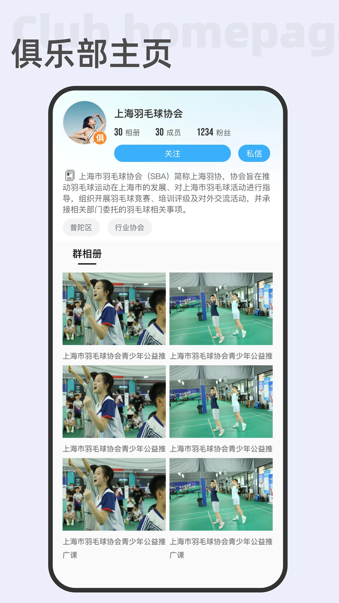 3、内容记录图文视频同步展示,所有互动素材自动生成运动群相册便于回顾。