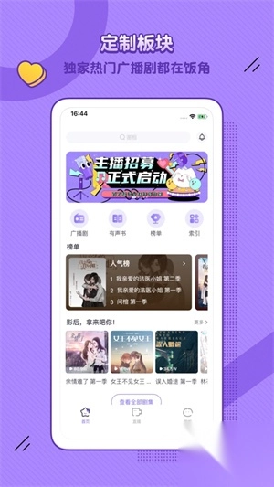 独家爆款资源:集合百合广播剧、有声书、电台等独家热门内容,全方位满足你的听觉幻想。