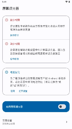 屏幕调光器软件,无疑是调节屏幕亮度的得力助手。它拥有自动和手动调节屏幕亮度的功能,软件界面简洁明了,操作简单便捷。其功能丰富多元,用户既能够自行进行相关设置,也可以利用它自动设置的特点来实现目的。特别要指出的是,这款软件在安卓14以下的设备上都能正常运行,呈现出极佳的兼容性。