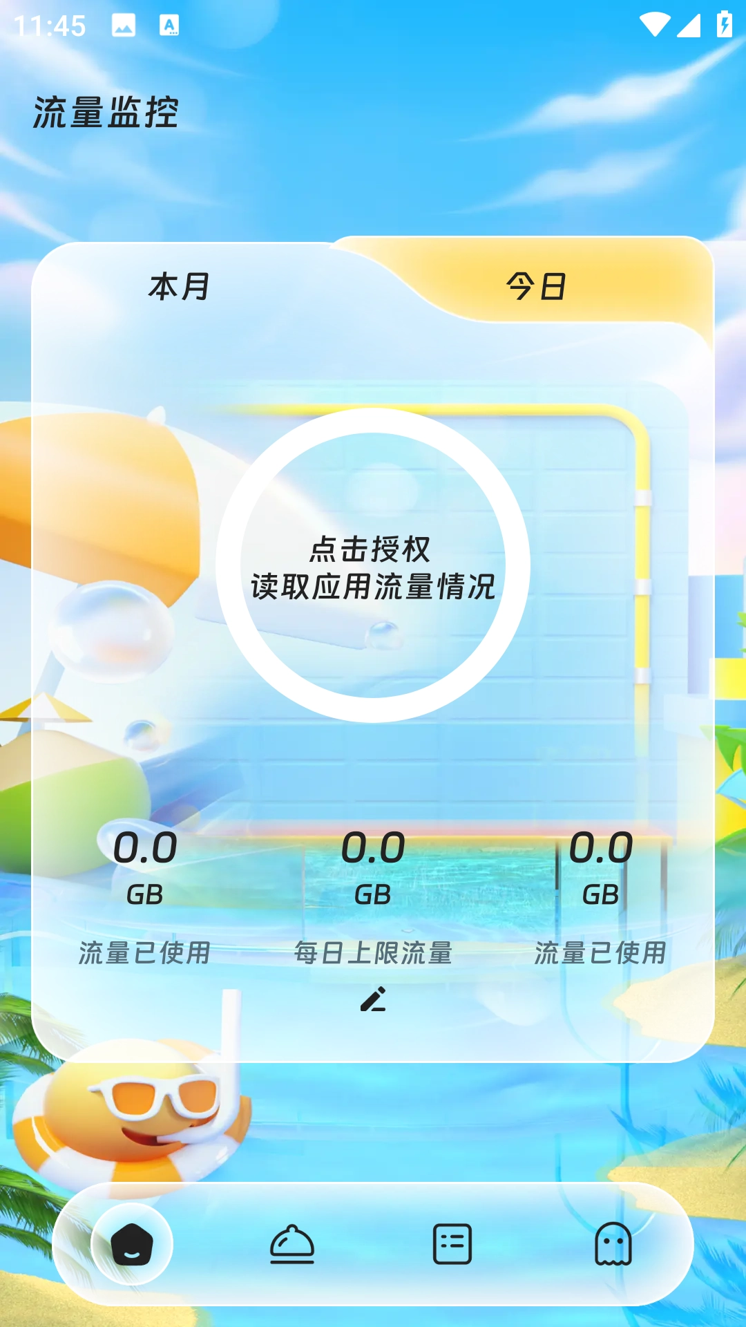 2、在软件首页,点击授权获取流量使用情况的权限;