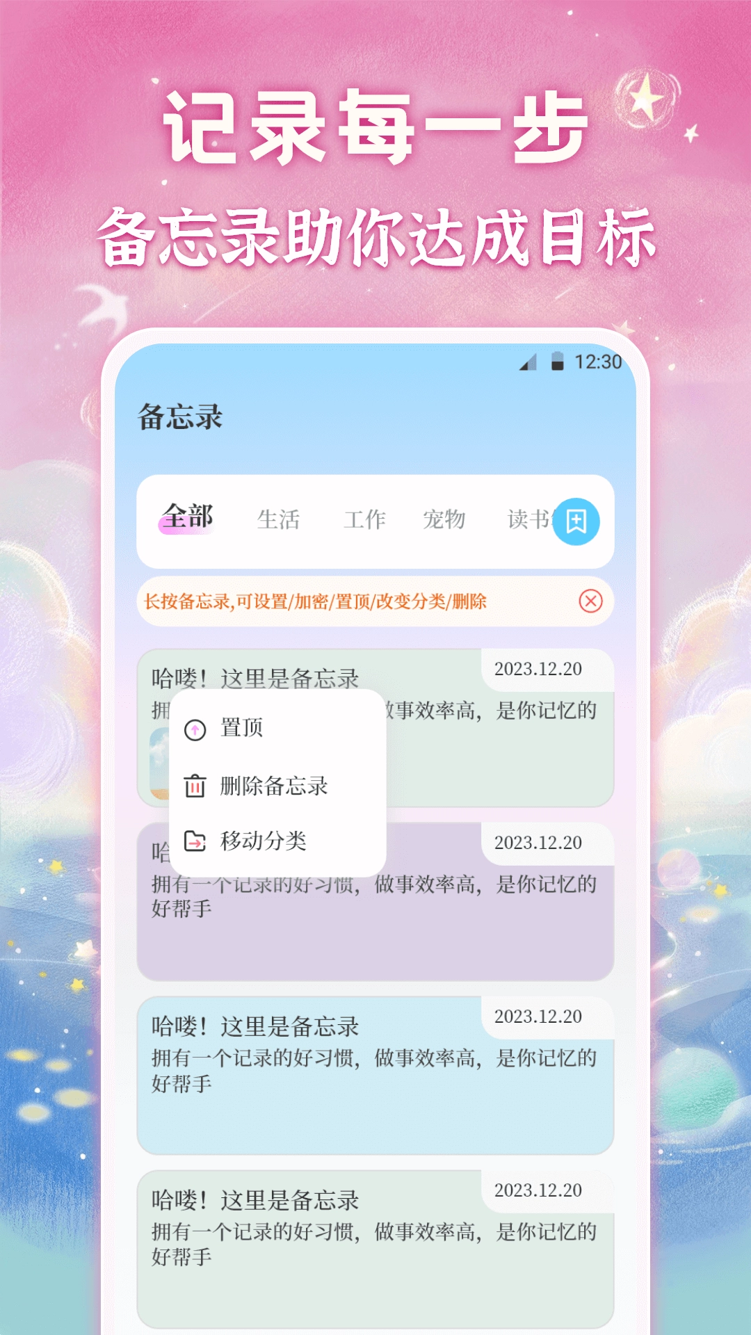 1、支持文字、图片、语音、视频等多种笔记形式,满足用户在不同场景下的记录需求。