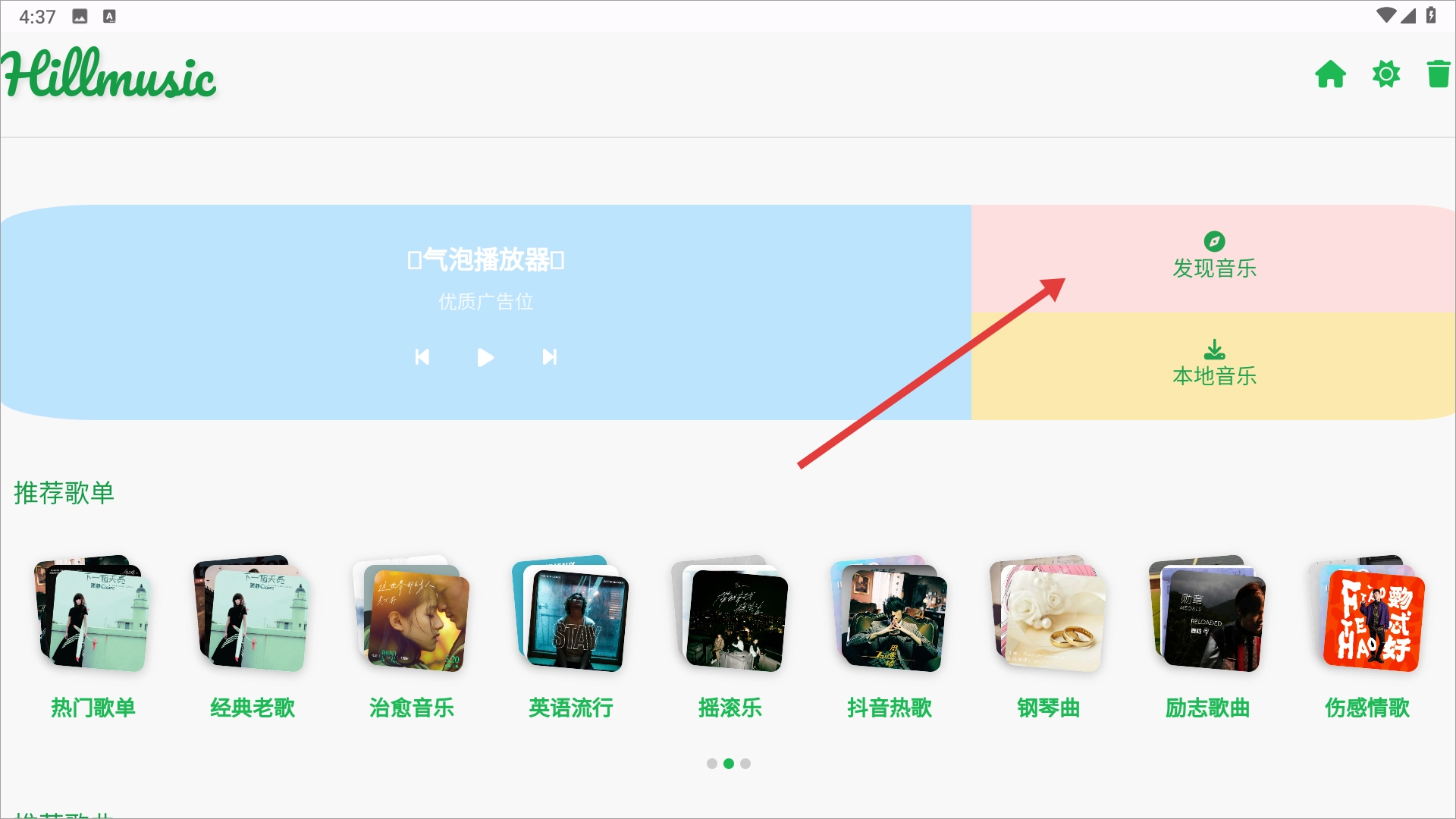 1、若要在本站进行安装操作,接着点击发现音乐。