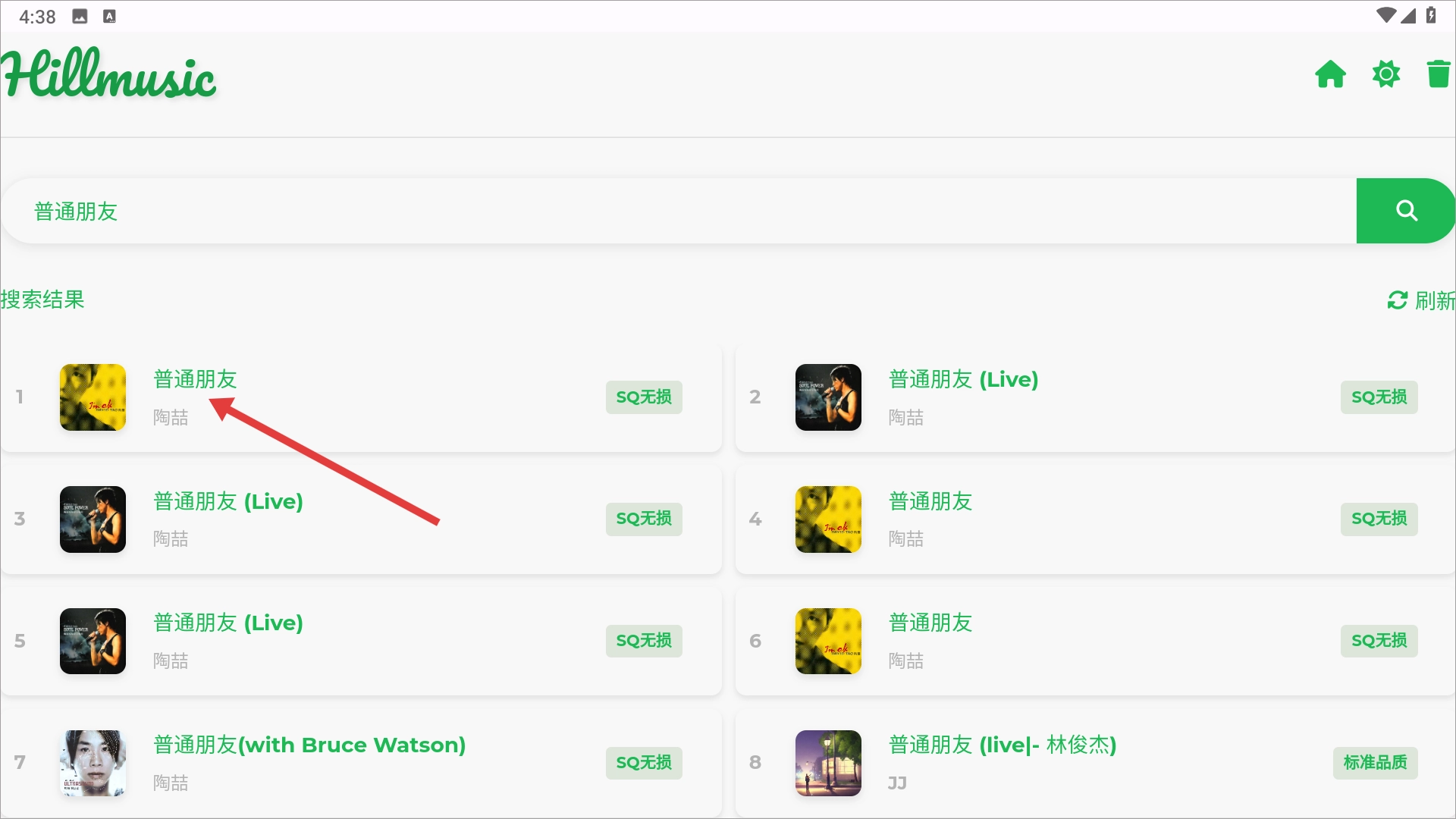 3、点击搜索,即可推送相关歌曲家的音乐内容