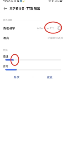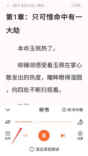 4、进入听书设置页,选择朗读语音和语速即可听书。