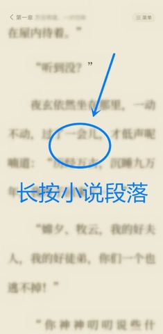 1、打开全免小说书籍阅读页面,长按书籍段落。