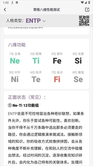 3、还可获取详细的人格分析解说,更加了解自己的性格特质