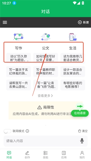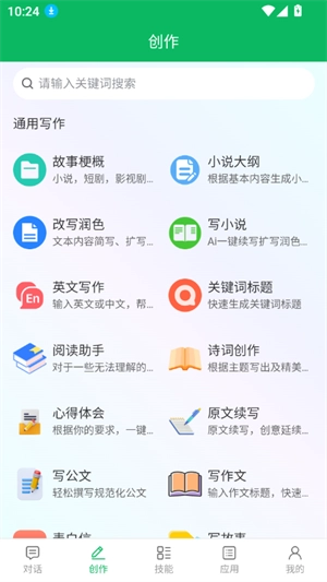 4、进入创作板块,还有更多写作标签,无论是写小说,生成文案,脚本,润色,写作辅助等都可以实现