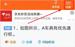1、同样的在安行驾考的答题的功能界面,选择点击“设置”功能