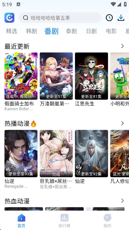 5、在排行榜页面,可以查看最新的电影、电视剧、动漫等排行榜单