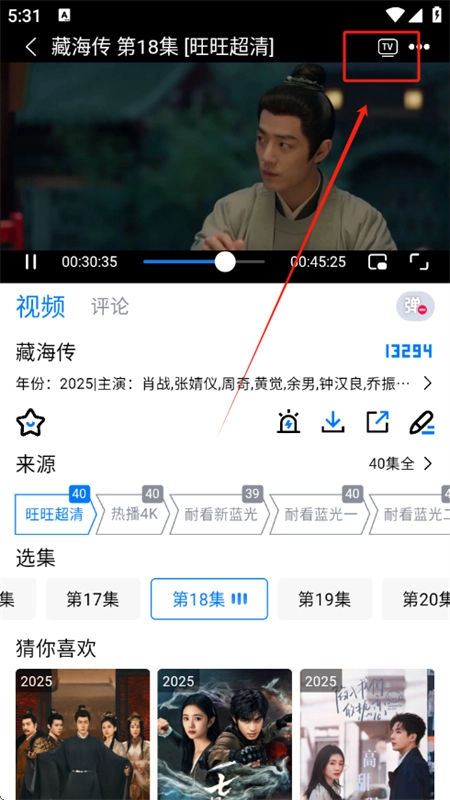 3、点击进入播放页面,再点击右上角的投屏按钮