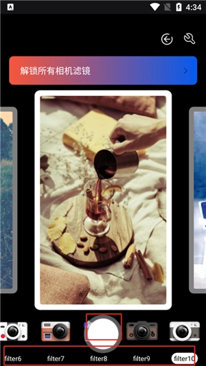 1. 打开软件,其中为用户准备了大量的胶卷滤镜,你只要挑选自己心仪的滤镜,点击中间的拍照按钮就行。