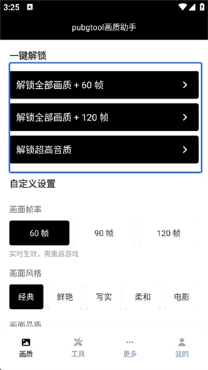 PT画质助手正版,也叫PUBGTool,它能一键调整《和平精英》以及PUBG国际版的游戏分辨率与帧率,完全免费,对设备配置要求不高,即便是低配手机,也能畅享更高品质的游戏画质。不仅如此,PT画质助手正版还能够解锁高达240帧的帧率,使游戏操作更为流畅顺滑,而且使用起来安全可靠,不会导致账号被封禁。有需求的小伙伴,快来PT画质助手正版感受一下吧!