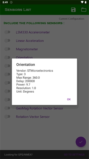 3、自定义传感器列表:自由配置手机上的传感器类型及数据流传输模式。