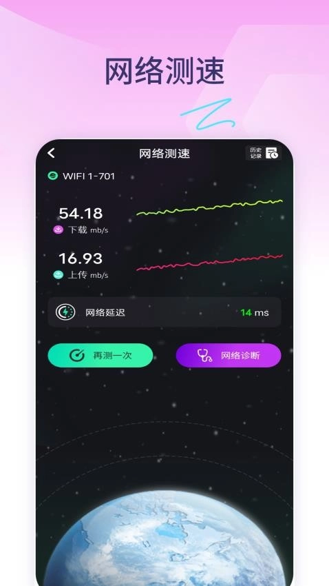 1. 具备简单易用的网络测速功能,能使用户快速检测网络速度。