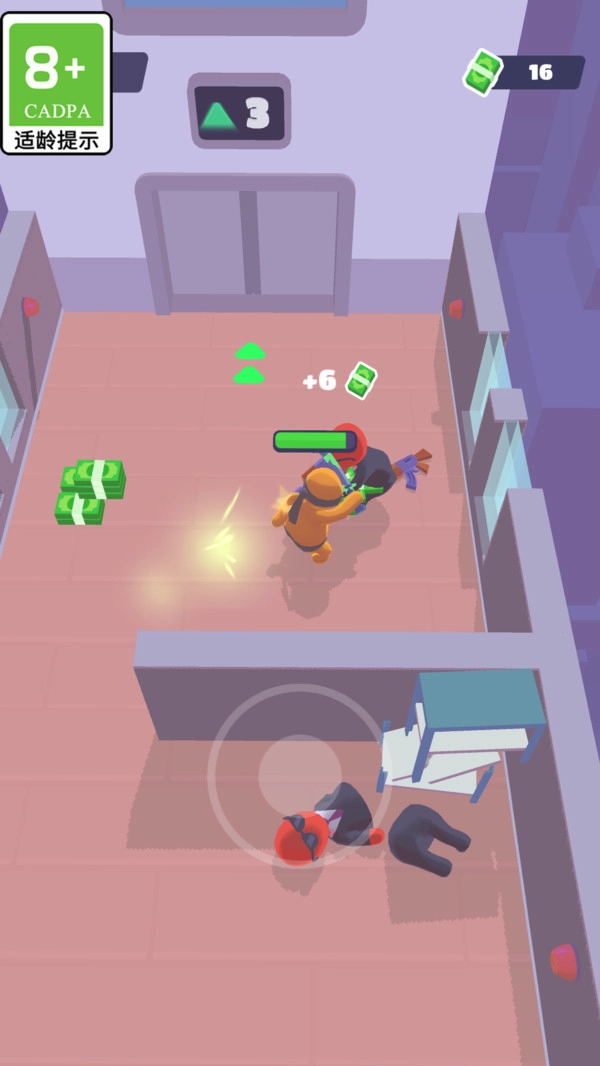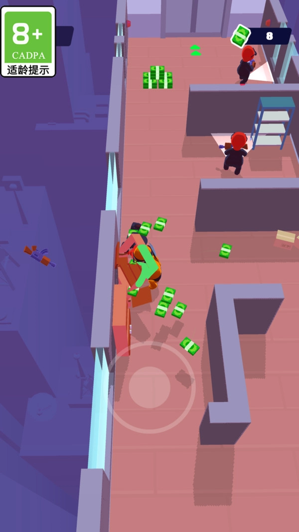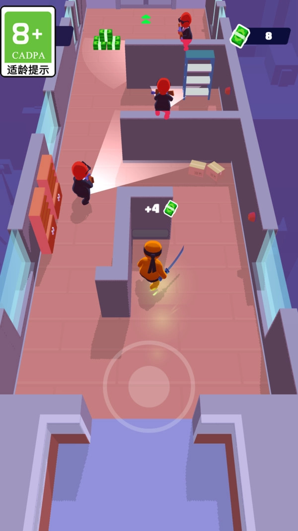 3. 位于游戏左下角的虚拟摇杆是移动控制区域,玩家能够通过拖动它来操控角色的方向,需谨慎地避开敌人的视线,同时寻觅最佳的攻击路线。