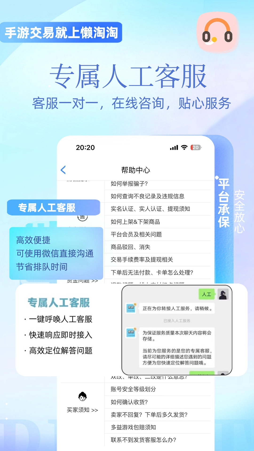 4、【保障】平台已接入实名认证、实人认证、签署契约锁人脸识别合同以及交易期间三级人脸检测,支持包赔商品找回包赔。