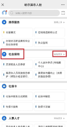 (二)进入界面后,点击“社会保险”下的“查看更多”。